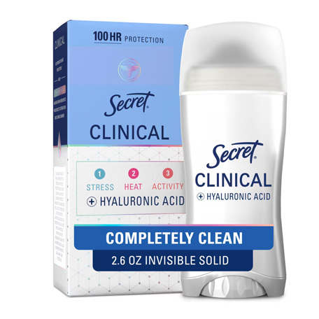 The Secret Clinical Hyaluronic Acid Antiperspirant offers three times the sweat protection versus the wetness protection required of an ordinary antiperspirant.
