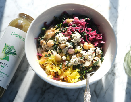 And to support a healthy gut microbiome, try the new Blissful Belly Bowl, a delicious probiotic bowl packed with kale, quinoa, chickpeas, creamy vegan cheese, miso dressing and colorful krauts.